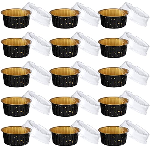 Confezione da 50 pirottini in alluminio con coperchio, 125 ml, usa e getta, in alluminio, per mini muffin, cupcake, budini, snack e dessert, confezione da 50