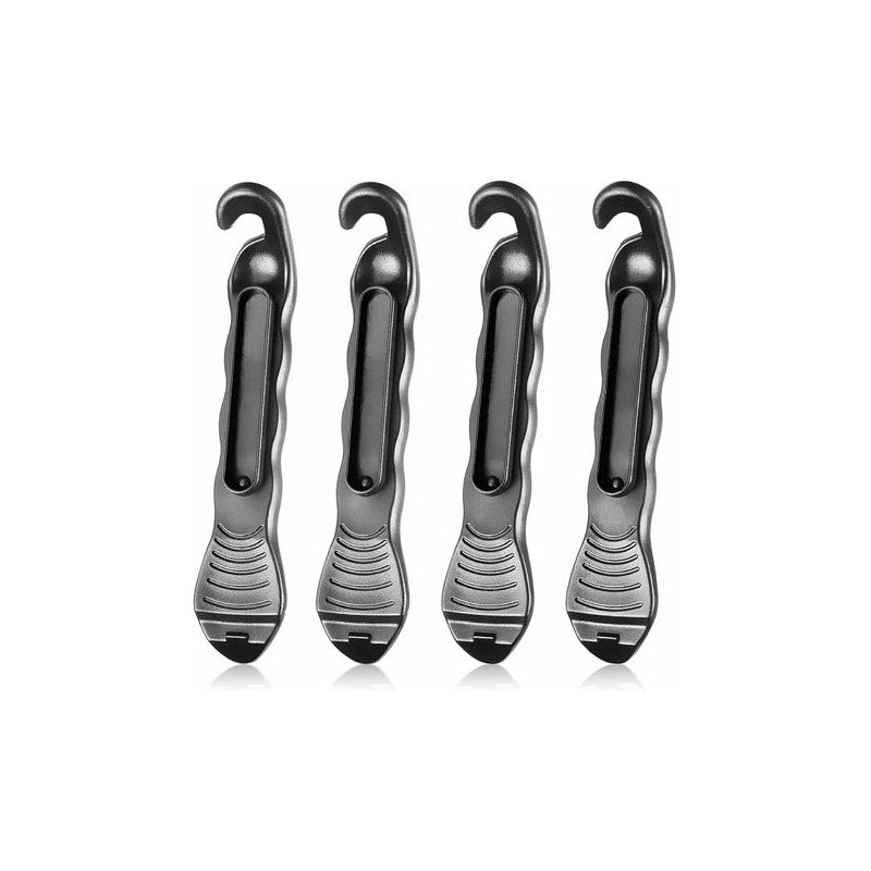 ROBUSTO E PERFETTO - questo tipo di smontagomme è realizzato con materiali di alta qualità, facile da usare, design moderno, leggero e portatile, sono molto amati dagli appassionati di ciclismo di tutto il mondo. [DESIGN DEL PRODOTTO] Per chi ama il ciclismo, è progettato ergonomicamente per essere facile da impugnare. Leva con punta smussata per inserirla facilmente sotto il tallone e gancio per raggio per mantenere la leva in posizione, rimuovere facilmente i pneumatici più stretti per tutti. [FUNZIONE DEL PRODOTTO] smonta - Pneumatici per bicicletta ultra resistenti di alta qualità, principalmente utilizzati per strumenti di riparazione pneumatici per biciclette, riparazione della camera d'aria della bicicletta o sostituzione del cerchione. 【Riceverai】4 strumenti per manubrio di ruote di bicicletta, questo tipo di leva per pneumatici è adatto a tutte le biciclette, come ruote da montagna, ruote stradali, set di ruote pieghevoli, ecc. Goditi il tuo giro in bicicletta. Specifica