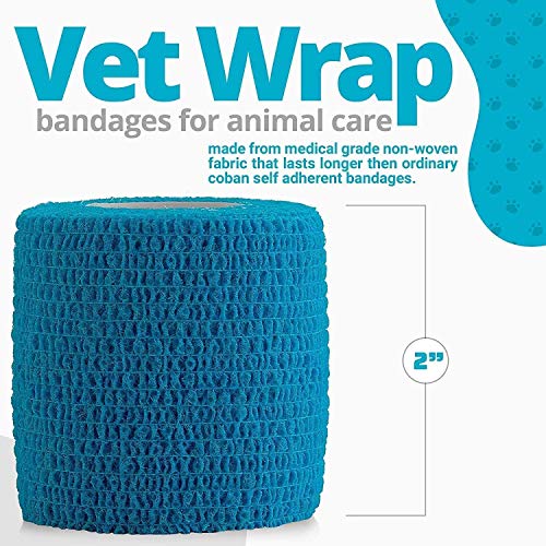 Vet Wrap - (confezione da 12-2 pollici x 5 Yard Rolls) Self Adherent Wrap Bendage Cohesive Compression Bandage e Medical Gauze Bandage Roll Tape per cani, gatti, cavalli, colori assortiti