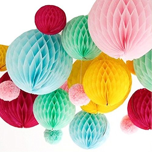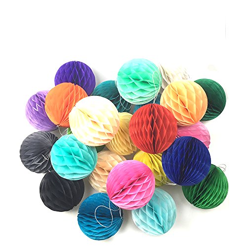 Confezione da 24 pompon a nido d'ape di carta velina, da 10 cm, in colori assortiti, adatti per baby shower, compleanni, matrimoni o come decorazioni da appendere
