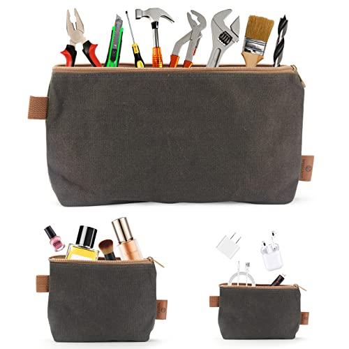 Confezione da 3 portautensili con cerniera, 453,6 g, tela cerata, resistente, piccola borsa in tela con cerniera, organizer per attrezzi (grigio)