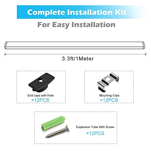 Contenuto della confezione: 6 canali in alluminio da 1 m, 6 coperture bianche millky, 12 tappi terminali e 12 clip di montaggio. (Nota: Striscia LED non inclusa. Se si desidera più stili, tra cui quelli con luci a striscia LED, si prega di cercare direttamente "LightingWill LED Aluminum Profile".