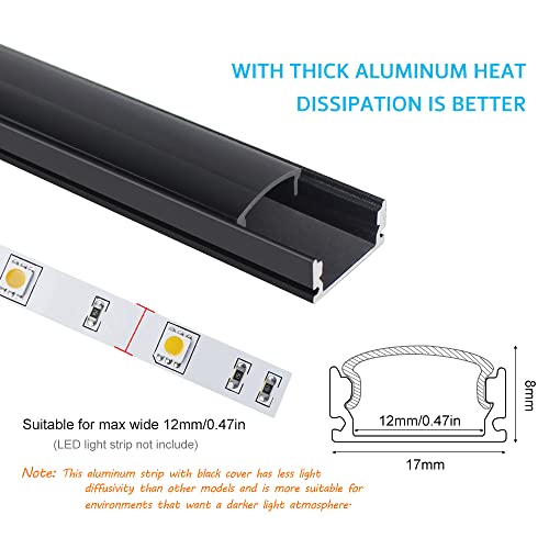 Confezione da 6 profili in alluminio a LED, canale in alluminio a LED, con coperchio nero in cristallo, tappi terminali e clip di montaggio estrusione in alluminio per strisce LED U02