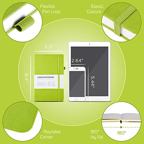 Confezione da 3 quaderni a righe, con copertina rigida, con pagine numerate e contenuto di indice, 2 tasche interne, 2 segnalibri Rib 100 g/m², copertina foderata (verde)