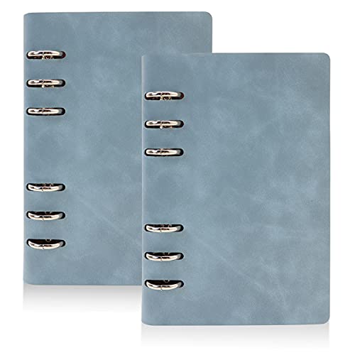 LELE LIFE Confezione da 2 raccoglitori per quaderni in pelle PU, formato A6, 6 anelli, copertina per raccoglitori di budget per notebook, raccoglitore di denaro, blu
