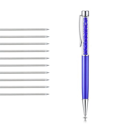 Confezione da 10 ricariche per penna a sfera D1 mini micro Multipen, inchiostro nero compatibile con penna a sfera Swarovski Crystalline, Cross, Cartier® + elementi di cristallo scintillanti Blue