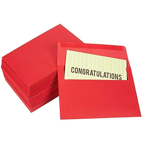 Confezione risparmio da 100 buste quadrate con linguetta in formato A7 color rosso acceso per biglietti di auguri e inviti, dimensione: 13,3 x 18,4 cm