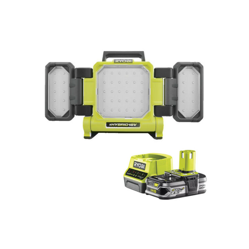Presentazione: La confezione RYOBI Triple LED panel light 18V OnePlus 3000 Lumens RLP18-0 - 1 Batteria 2,5Ah - 1 Caricatore rapido RC18120-125, sarà perfetta per illuminare un cantiere con un'intensità variabile che sale a 3000 lumen. Funziona con la batteria da 18 V (venduta nella confezione, con il caricabatterie) della gamma OnePlus. I pannelli laterali possono essere ruotati di 360° e quello centrale di 150°. Vantaggi: Lampada a pannello a tre LED RYOBI 18V OnePlus - 3000 lumen - RLP18-0: Alimentazione a batteria per illuminare ovunque Intensità luminosa variabile, fino a 3000 lumen Tutti e tre i pannelli sono regolabili Batteria da 2,5Ah - Caricabatterie rapido RC18120-125: Batteria al litio+ da 2,5 Ah ad altissime prestazioni, compatibile e retrocompatibile con gli utensili da giardino e fai-da-te 18V ONE+. Nuova tecnologia Lithium+ IntelliCell: gestione della carica e della scarica delle singole celle = celle cariche al 100%. Indicatore del livello di carica: 4 LED al 25%