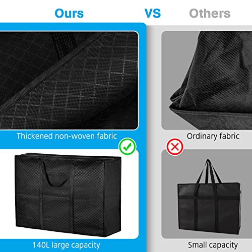 Confezione da 4 sacchetti extra large da 140 l, per spostarsi, resistenti sotto il letto, con cerniera, per vestiti, piumini, viaggi, campeggio, scatole mobili, grandi, resistenti (nero)