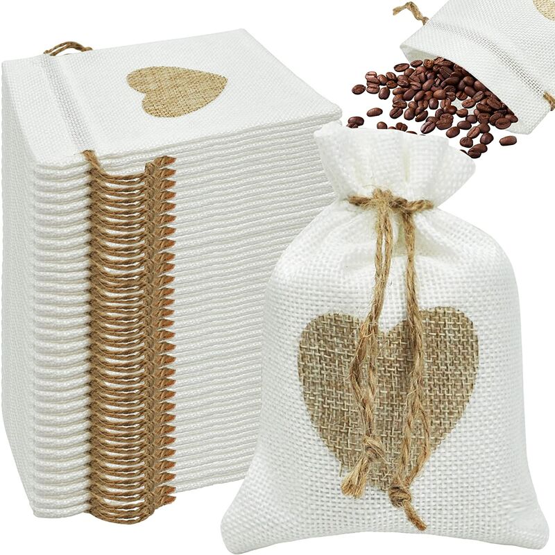 la fodera in tessuto non tessuto è resistente. Usi: i sacchetti di iuta con motivo a cuore possono essere utilizzato per conservare gioielli, piccoli regali, caramelle, bomboniere;