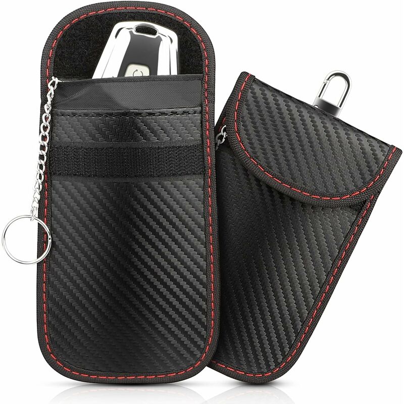 Schermatura RFID - Utilizza materiale di schermatura RFID, blocca in modo efficace autoradio/segnali remoti in tutte le direzioni come RFID/NFC/WiFi/GSM/LTE/GPS/Bluetooth. 【Più sicuro】Realizzato in pelle PU di alta qualità e due strati di materiale protettivo, le chiavi dell'auto sono posizionate nello strato protettivo e lo scomparto esterno può contenere chiavi normali o coupon di parcheggio. Fornisce un blocco del segnale completo per il portachiavi del tuo veicolo. 【Design conveniente】 La nostra borsa di blocco RFID è uno dei pochi prodotti sul mercato con un portachiavi. Attacca il portachiavi al tuo portachiavi, usa il gancio esterno per appendere la borsa ai jeans o allo zaino, molto comodo per l'uso quotidiano. 【Stile universale】 Fornisce una funzione di protezione del segnale e un aspetto semplice ed elegante . Con una dimensione universale di 14 x 9 cm, non solo può essere facilmente trasportato, ma è anche adatto per riporre quasi tutte le chiavi, telecomandi o carte