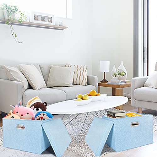 JYPS - Confezione da 1 scatole pieghevoli extra large con coperchio e manici, in tessuto di lino lavabile, per riporre vestiti, pieghevole, per camera da letto, armadio, 45 x 32 x 31 cm, colore: Blu