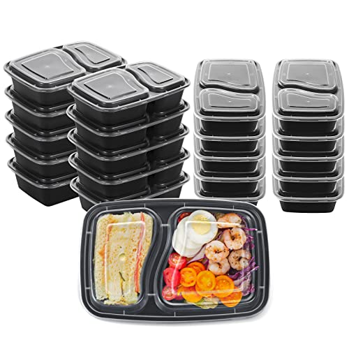 Zeng Confezione da 20 scatole Meal Prep, 2 scomparti da 1000 ml, riutilizzabile, senza BPA, con coperchio, lavabile in lavastoviglie, chiusura ermetica