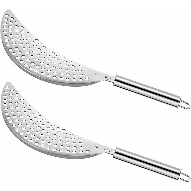 MATERIALE - Lo scolapasta a forma di mezzaluna è realizzato con materiali in acciaio inossidabile di alta qualità e le maniglie laterali tengono le mani lontane dall'acqua calda. Facile da usare e da pulire. 【DIMENSIONE】 Lunghezza totale 14,37 pollici/36,5 cm. Non è più necessario utilizzare un setaccio o altri filtri per pulire o mescolare. Puoi anche rimuovere facilmente il cibo fritto dalla padella calda. Drena il grasso quando viene sollevato. E puoi usarlo per girare il cibo durante la cottura., 【CARATTERISTICHE】 Il design a mezzaluna si adatta alla maggior parte delle pentole e padelle, le maniglie laterali facili da impugnare garantiscono sicurezza e controllo completo. L'impugnatura senza direzione consente l'uso con la mano destra e sinistra. 【CONFEZIONE】 Colino per noodle da 2 pezzi con manico.
