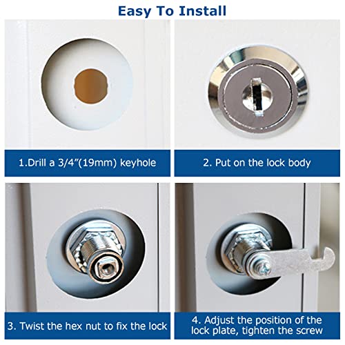 Facile installazione: questa serratura a camma per armadio è facile da installare. Basta praticare un foro da 19 mm nel punto adatto, inserire il corpo della serratura, fissare la camma con la vite di fissaggio. Può essere installato su pannelli in metallo, legno, porte o cassetti, è una protezione extra di sicurezza.