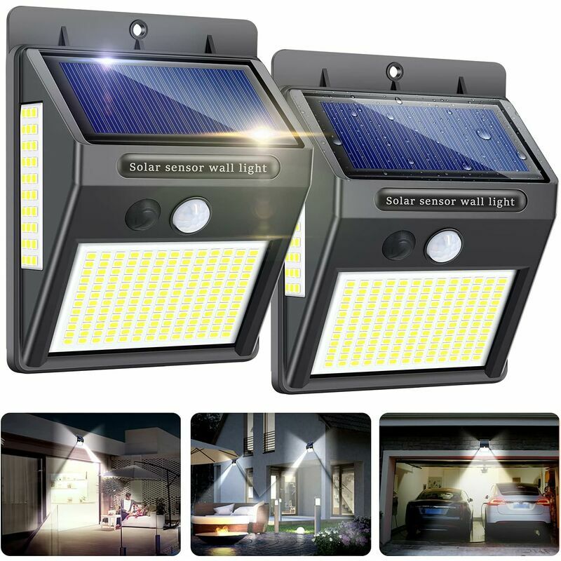 2 Pack 100 LED Solar Light Outdoor - Con l'ultima versione 2021, la potente luce solare da 100 LED equipaggia una batteria da 2100 mAh e può fornire 1000 lumen, in grado di soddisfare le diverse esigenze. È davvero perfetto da usare in giardino, cortile, garage, portico d'ingresso, ecc. 6 metri (10-19 piedi) e la luce esterna si accenderà automaticamente quando qualcuno passa da quest'area. Tutto ciò ti consente di vivere un'esperienza migliore durante la notte. 【Ecologico e conveniente】 Con il 20% di conversione dell'energia, questo esterno può ricaricarsi rapidamente anche nelle giornate nuvolose. Inoltre, senza bisogno di cavi e fili, la luce solare è facile da usare, puoi installarla sulla parete con chiodi o nastro adesivo., 【Impermeabile e durevole】 Impermeabile IP65 e realizzata in ABS, questa luce solare per esterni può funzionare bene sotto la pioggia, neve, e resiste anche al calore, alla ruggine e alla polvere. Non devi preoccuparti che questa luce solare per esterni sia