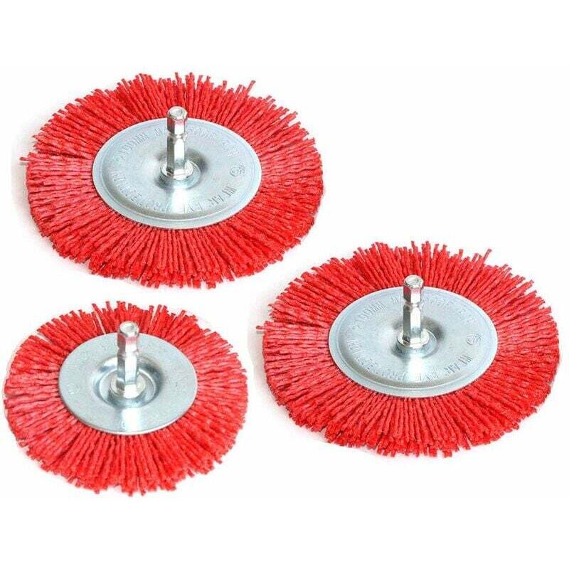 Queste spazzole metalliche in nylon mantengono la loro forma e non arrugginiscono. Non perdere i capelli in condizioni normali. . Materiale: sabbia abrasiva composita in nylon. La spazzola con setole di nylon è quindi più sicura da usare rispetto alle spazzole in filo d'acciaio, non fora la pelle. . Applicazioni: adatto per lucidare e sbavare il legno. Può essere utilizzato anche per rimuovere vernice, corrosione, incrostazioni di saldatura, ruggine superficiale e ustioni metalliche. . La confezione include: 1 spazzola per ruote da 3 pollici;