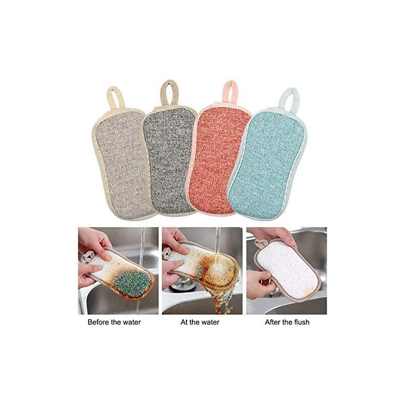 Buona spugna: Lo strato intermedio del pad della lavastoviglie è una spugna morbida e spessa. Ha una grande elasticità e si riprende rapidamente. Può produrre una schiuma ricca quando si utilizza il detersivo per piatti e rimuove facilmente grasso e macchie. Riutilizzabile: è facile da pulire con acqua o detersivo e non produce macchie, odori o macchie. È pulito e igienico e può essere utilizzato più e più volte. Due lati diversi: un lato è in microfibra per la pulizia e la pulizia, l'altro è uno scrub non abrasivo per rimuovere i residui di sporco. e pasticci ostinati, perfetti per pentole antiaderenti e antigraffio. Facile da pulire: questa spugna per piatti ha una cinghia appesa sulla parte superiore per una facile asciugatura e conservazione. Pulirlo dopo l'uso, strizzarlo delicatamente e poi appenderlo. Può asciugarsi rapidamente all'aria. Ti aiuta a mantenere la tua cucina pulita e ordinata. È pulito e igienico e può essere utilizzato ripetutamente. Il pacchetto include: 4 pezzi