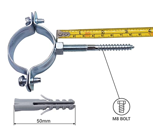 ✔️ Confezione: 2 staffe per tubi, 2 tasselli in plastica 10 x 50 mm, 2 bulloni per gancio e 1 punta per cacciavite PH
