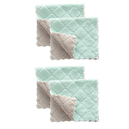 Confezione da 4 strofinacci da cucina, 25 x 15 cm, super assorbenti, in velluto corallo, antiaderente, ad asciugatura rapida, salviette per la pulizia della casa (verde e grigio)