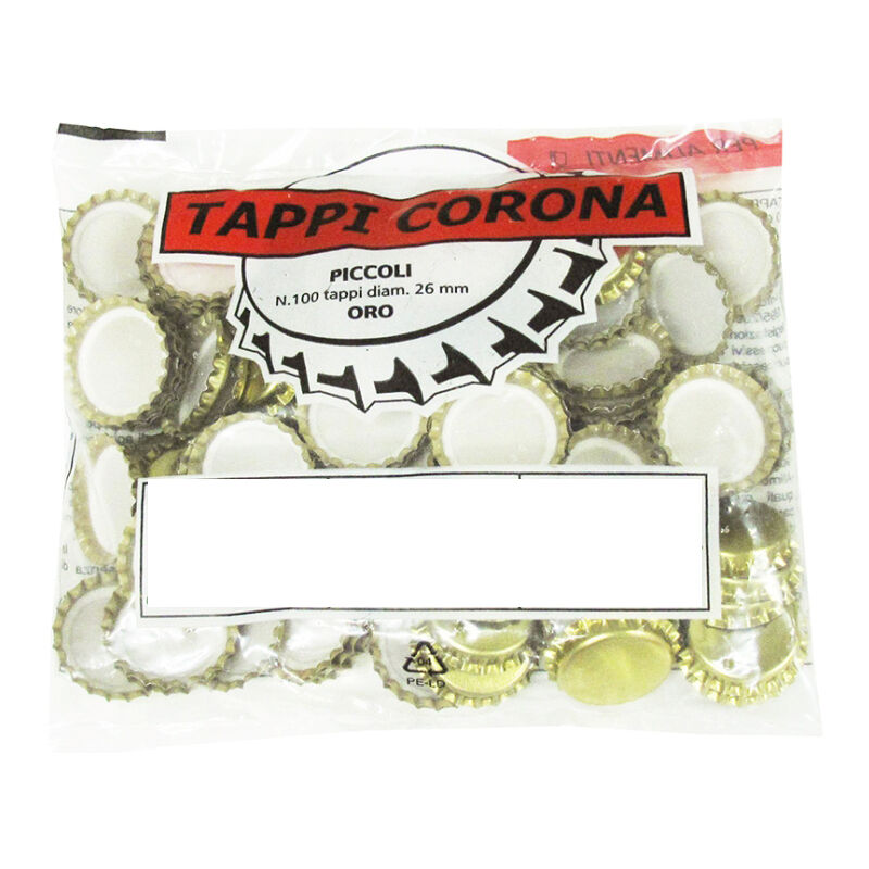 Tappi per bottiglie in confezione da 100 pezzi con corona in colore oro. Tappi In confezione da 500 pezzi 5 confezioni da 100 Con corona Adatti per ogni tipo di bevanda