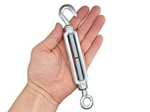 Confezione da 1 tenditore per cavi 10 x 125 mm, in metallo zincato M10, DIN 1480, con gancio e occhiello per cavi, resistente (1)