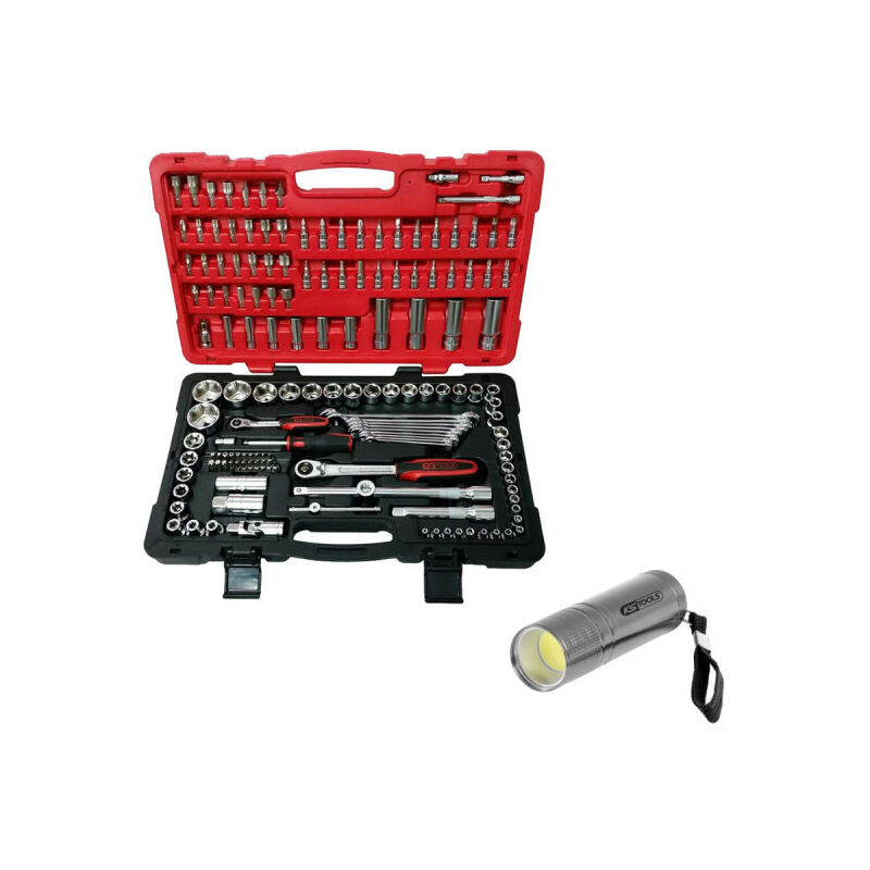 Presentazione: Questo KS TOOLS - Ultimate Socket and Accessory Set - 151 pezzi - COB LED Torch - L.84 mm comprende un set completo e versatile di prese e accessori per uso personale e professionale. È disponibile un'ampia gamma di punte per cacciavite. È inclusa una torcia. Potente e compatto al tempo stesso, può essere portato ovunque. Ha un'autonomia di 1h30 e sarà utile sia per un uso occasionale che quotidiano. Vantaggi: KS TOOLS Set definitivo di bussole e accessori - 151 pezzi - 922.0751: Uso versatile 151 pezzi Cricchetto reversibile 72 denti KS TOOLS Torcia LED COB - L.84 mm: Facile da trasportare Venduto con il suo cinturino Caratteristiche: Set di bussole e accessori KS TOOLS Ultimate - 151 pezzi - 922.0751: Cricchetto reversibile 72 denti Bussole 1/4 - esagonali: 4 - 14 mm Bussole 1/4 - torx: E4 - E8 Bussola 1/2 - esagonale: 10 - 34 mm Chiavi: 6 - 19 mm Punte per cacciavite: esagonali - a croce - pozidriv - torx - piatte - 12 esagonali KS TOOLS Torcia LED COB - L.84