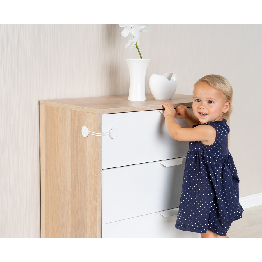 Dettagli del prodotto: Per la chiusura a prova di bambino di cassetti aden, armadi e lavastoviglie, frigoriferi e microonde Tenuta forte e rimozione senza residui Facile da maneggiare per gli adulti: funzionamento con una sola mano Testato secondo la norma EN 16948:2017 Design: bianco <