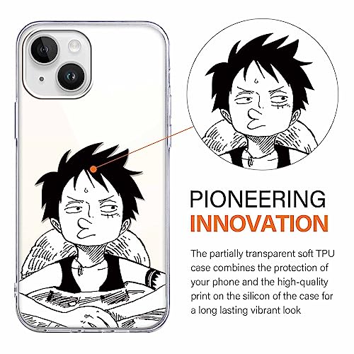 2 Confezioni - Custodia per Apple iPhone 14 et iPhone 13 6,1",Anime Luffy Ace Protezione Case, Trasparente Morbida TPU Silicone Cover Compatibile con iPhone 14