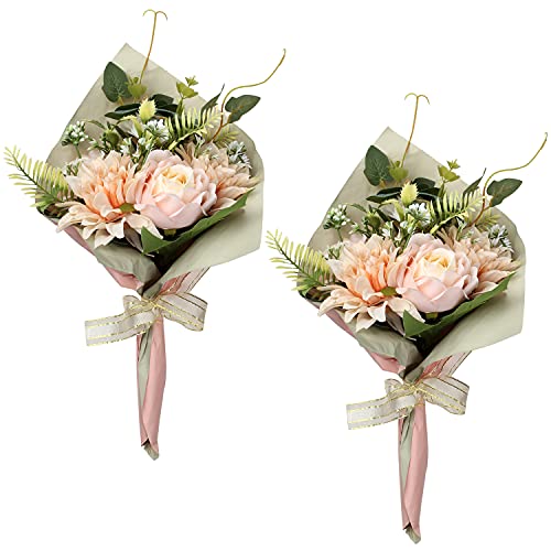 2 confezioni di fiori artificiali bouquet di fiori avvolti con rose finte crisantemi, decorazione per matrimoni, decorazioni floreali in seta, centrotavola per la casa, regalo di fiori