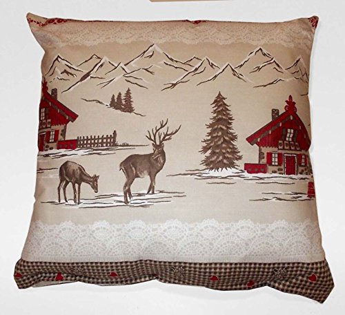 Confezioni Giuliana Coppia Cuscini ARREDO Tirolese Badia Beige Rosso cm 40x40 Cuscino tirolo