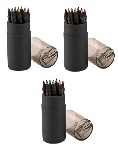 Set Nero di 3 confezioni da 12 matite colorate con temperamatite temperino, per feste dei bambini, matrimonio, ristorante, tubo pastelli neri cartone