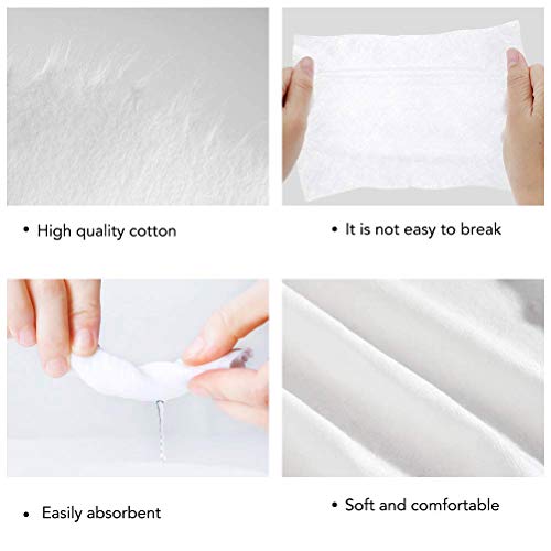 Dimensioni extra: tessuto di cotone per il viso, dimensioni: 7,9 x 7,9 cm, quantità: 3 confezioni (300 pezzi), un fazzoletto di cotone è sufficiente per essere utilizzato su tutto il viso.