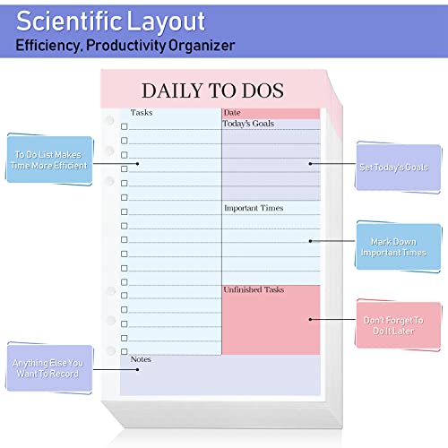 A5 TO DO List, 3 Confezioni di TO DO List Planner Ricarica di Carta, 6 Fori Lista di Cose da Fare Ricarica di Carta 150 Fogli TO DO List Notepad per Agende, Planner, Diario Giornaliero, Schizzi