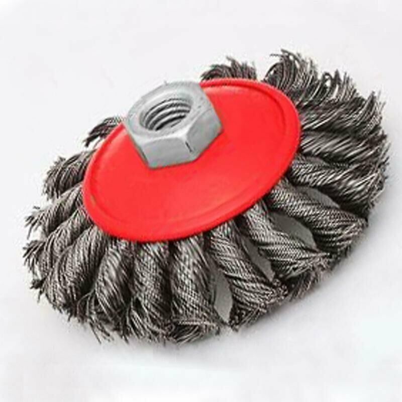 Fili in acciaio ad alta resistenza con un diametro di 100 mm. Per rimuovere ruggine, vernice, calcare, sbavare e preparare alla saldatura. Per lavorare, pulire e preparare metalli e pietre. Da utilizzare con smerigliatrici angolo.
