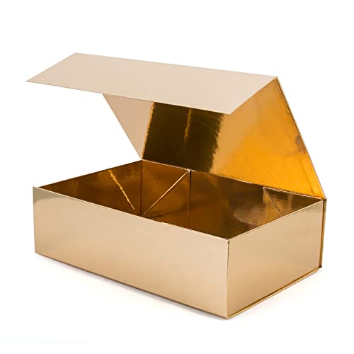 2 confezioni regalo con coperchio, scatola pieghevole magnetica, 33 x 22,5 x 10 cm, riutilizzabile, scatola regalo pieghevole, scatola decorativa per festival e anniversario (oro)