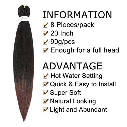 8 pacchi/lotto Ez Braid 50,8 cm Intrecciatura professionale pre allungata per capelli Yaki Texture per capelli all'uncinetto Trecce Estensioni dei capelli in fibra sintetica (T1B/30)