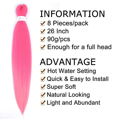 8 confezioni/lotto EZ Braid 66cm Treccia professionale pre allungata per capelli Yaki Texture per trecce di capelli all'uncinetto Estensioni dei capelli in fibra sintetica(#Rosa)