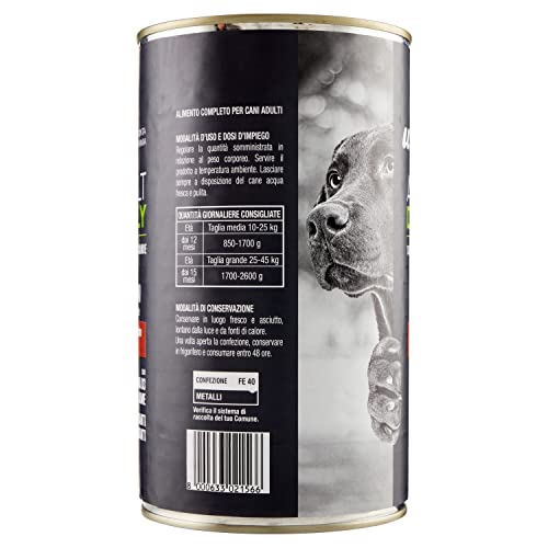 Razione giornaliera: Per un cane di taglia media, somministrare 800 grammi di prodotto al giorno, suddiviso in 2/3 pasti. Modalit d'uso: Servire a temperatura ambiente, oppure intiepidire. Lasciare sempre a disposizione dell'animale acqua fresca e pulita.