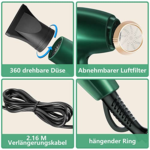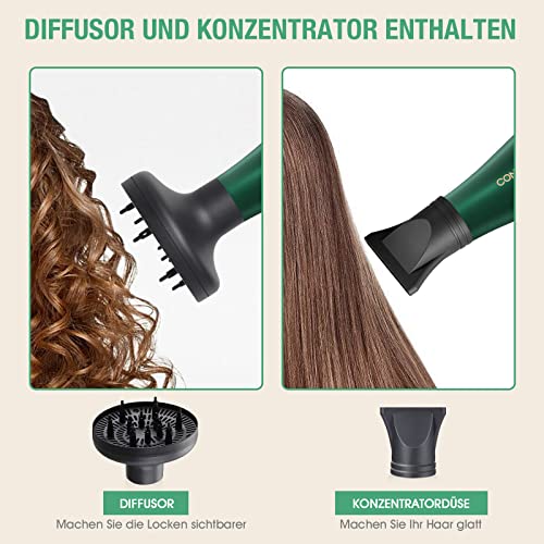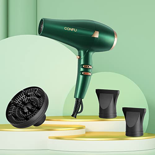 CONFU Asciugacapelli professionale agli ioni di litio, 2400 W, asciugacapelli con diffusore, ad asciugatura rapida, potente asciugacapelli per salone di capelli e famiglia (verde scuro)