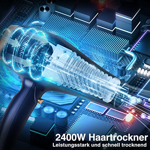 CONFU Asciugacapelli professionale agli ioni di litio, 2400 W, asciugacapelli con diffusore, ad asciugatura rapida, potente asciugacapelli per salone di capelli e famiglia (blu scuro)