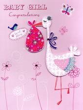 Baby Girl Congratulations Gigantic Greeting Card Embellished & Flittered A4 Sized
