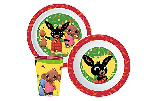 STOR S.L. Bing Coniglietto Kit Pappa Scuola Mare Piatto,Bicchiere E Ciotola in PLASTICA Riutilizzabile per MICROONDE Bing Coniglietto(1 Piatto,1 Bicchiere,1 Ciotola)