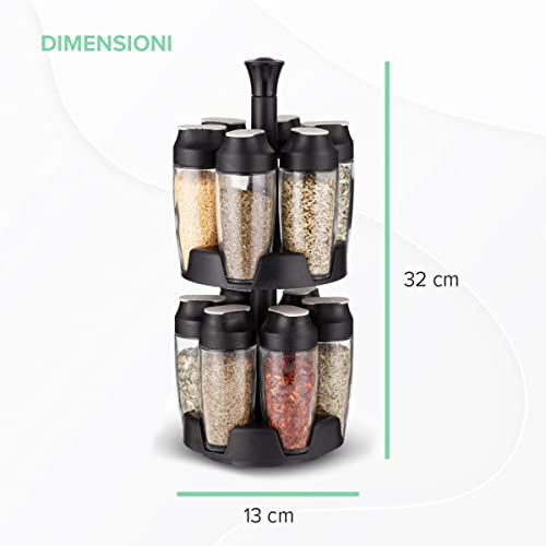 Coninx Spicero Portaspezie | Con 12 Barattoli di Vetro con Coperchio di Plastica | 14.9cm x 14.9cm x 32.9cm | Utensile d'Organizzazione di Cucina