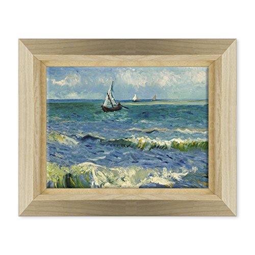 ConKrea QUADRO SU TELA CANVAS INTELAIATO - CON CORNICE - Van Gogh - Seascape near Les Saintes-Maries-de-la-Mer - Vista sul mare - 30x40cm - Stile Design Legno Naturale - (cod.2670)