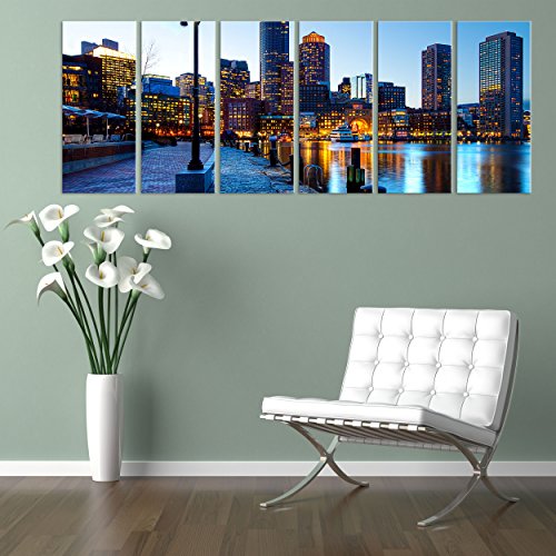 ConKrea QUADRO SU TELA CANVAS - INTELAIATO - PRONTO DA APPENDERE - Boston Porto e Distretto Finanzia - Massachusetts USA America - 190x70cm (cod.2797)