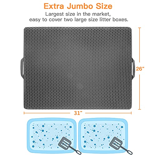 Conlun tappetino lettiera gatto, design a doppio strato a forma di nido d'ape, urina e materiale impermeabile, design di controllo della con maniglie laterali Grigio