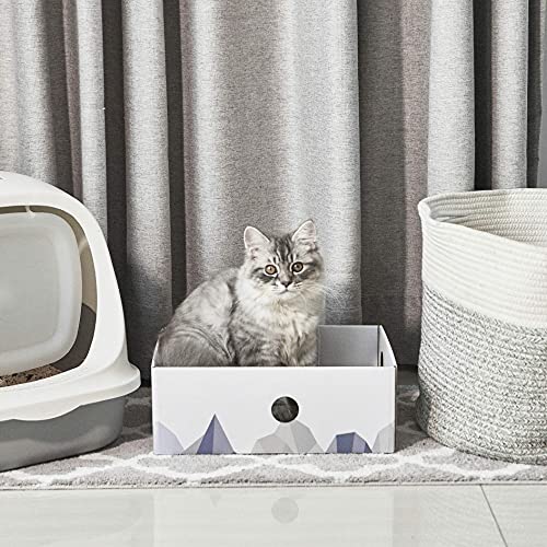 Realizzato in cartone resistente e riciclato: realizzato in materiale di alta qualità, denso e rigido, questa scatola resistente e il tappetino per tiragraffi per gatti possono tenere il passo con l'istinto giocoso del tuo gatto.