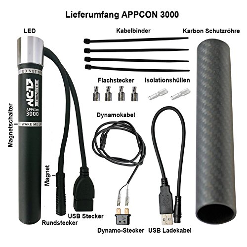 NC 17 Connect appcon 3000, smartes Caricatore USB per Bike Ruota Packing, Mondo e Viaggi/USB Carica di Navi, Smartphone, Fotocamera Gopro, con Bluetooth, BLE 4.0 App per iOS e Android