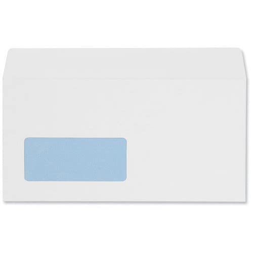 Q Connect-Buste formato Dl, 100 g/mq, buste con chiusura autoadesiva e finestra, colore: bianco (confezione da 500)